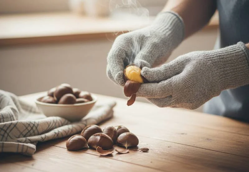 Deuxièmement, l'épluchage doit impérativement se faire quand les châtaignes sont encore chaudes. Une fois refroidies, les pellicules se recollent à la chair et deviennent quasi-impossibles à retirer. Travaillez donc par petites portions.