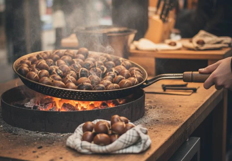 La technique ancestrale qui évoque les vendeurs de rue parisiens ! Cette approche combine la cuisson et l'épluchage en une seule étape. Idéale pour obtenir ce goût légèrement fumé si caractéristique des châtaignes grillées.