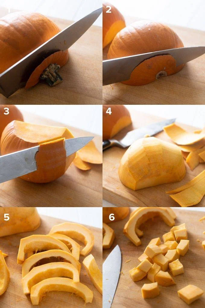- Préparation initiale: Lavez soigneusement le potiron extérieur, puis coupez-le en deux et retirez graines et filaments comme décrit précédemment.