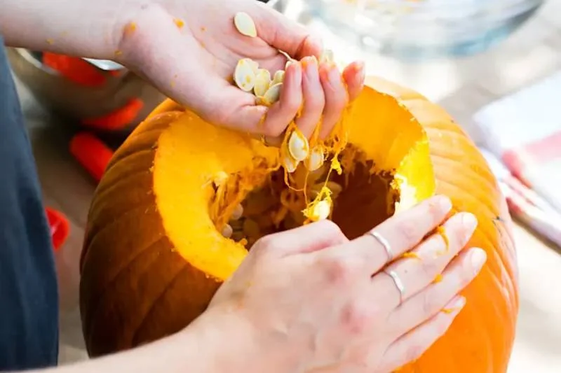 - Préparez des graines de citrouille rôties : Nettoyez et séchez les graines de citrouille bien, puis mélangez avec de l'huile, du sel, et tous les assaisonnements désirés selon vos goûts personnels, et faites rôtir dans un four à basse température jusqu'à ce qu'elles soient dorées et croustillantes parfaitement délicieuses.