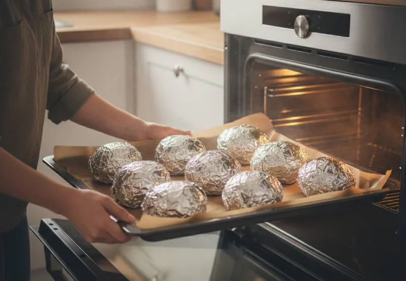Suggestion gourmande : Glissez entre les feuilles une farce légère de chapelure, parmesan, ail et persil haché avant d'emballer dans le papier aluminium. Le tout cuit ensemble et les arômes s'imprègnent profondément dans la chair — un artichaut farci au four est une entrée végétarienne absolument spectaculaire.