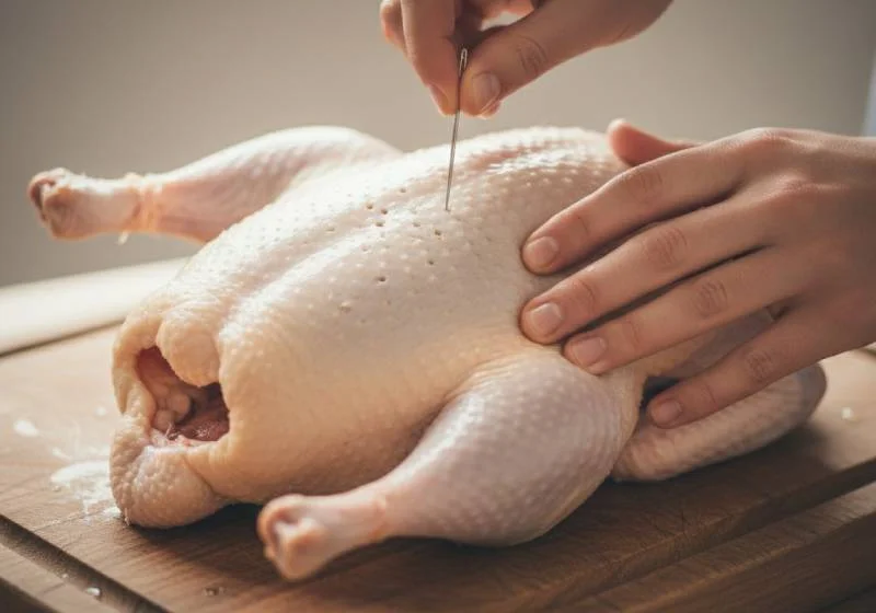 💡 Recommandation Pratique : Piquez légèrement la peau du canard avec une aiguille sans transpercer la chair. Cela permettra à la graisse de s'écouler pendant la cuisson et vous obtiendrez une peau parfaitement croustillante.