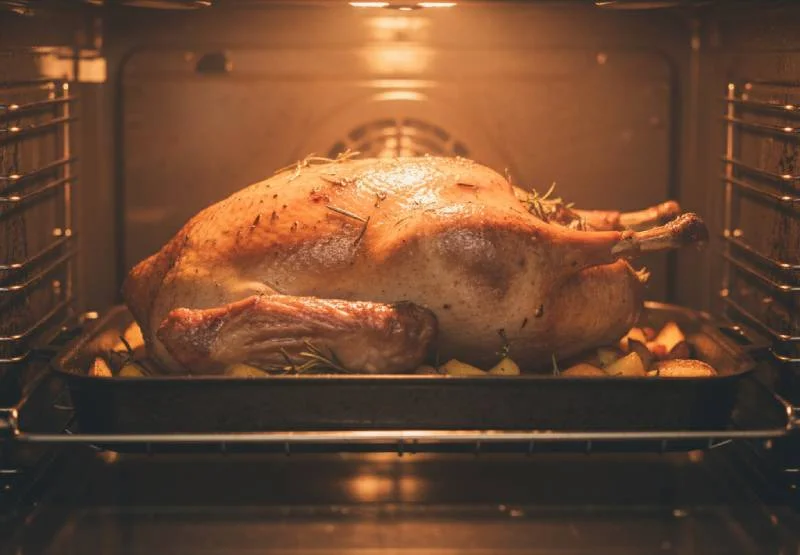 Tasser excessivement la farce dans la cavité empêche la chaleur de circuler correctement, prolongeant la cuisson et risquant de laisser la farce insuffisamment cuite au centre. Remplissez généreusement mais sans compacter, et vous pouvez même cuire une partie de la farce séparément dans un petit plat à gratin.
