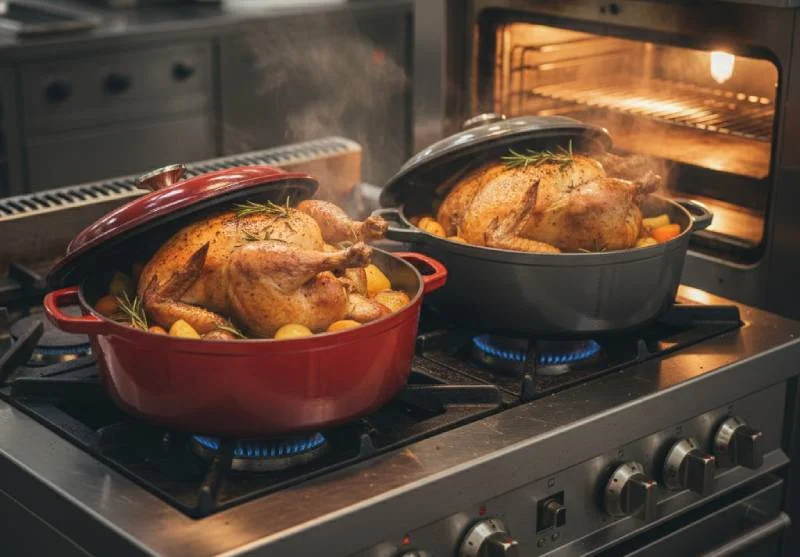 La cocotte en fonte constitue véritablement le secret des grands-mères pour réussir les volailles à tous les coups. Ce récipient magique distribue uniformément la chaleur sur toute sa surface et maintient une température stable qui élimine les risques de cuisson inégale que l'on rencontre souvent avec un simple plat à four.