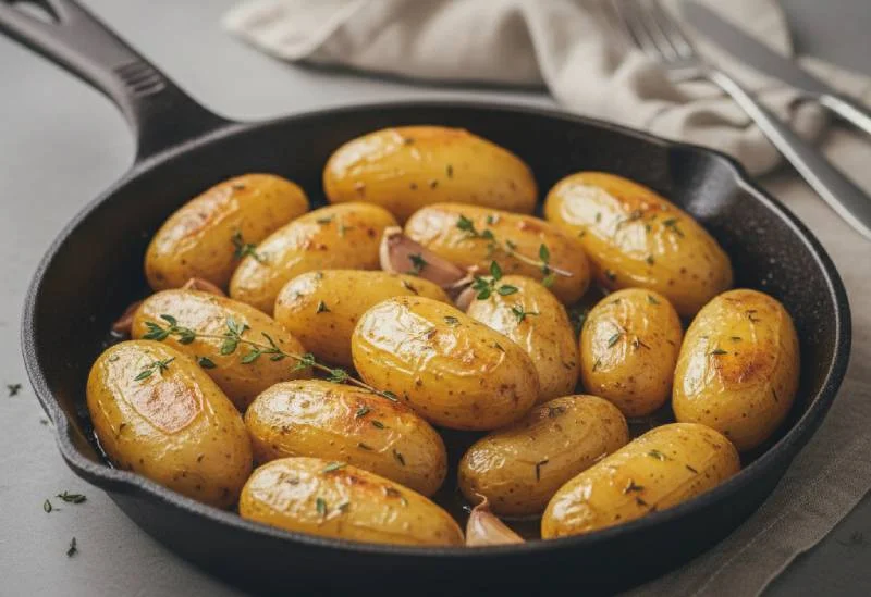 Ces pommes de terre cuites lentement dans du bouillon et du beurre offrent un fondant incomparable qui contraste magnifiquement avec le croustillant de la croûte. Tournez 1kg de pommes de terre (Ratte ou Charlotte) en forme d'olive, puis faites-les cuire dans une sauteuse avec 50g de beurre, 200ml de bouillon, thym et ail en chemise à feu moyen-doux pendant 30-40 minutes en les retournant régulièrement. Elles doivent être dorées à l'extérieur et fondantes à l'intérieur.
