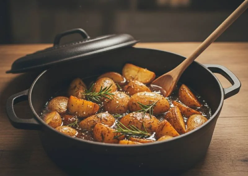 Rien n'égale pommes de terre cuites directement dans jus du rôti. Épluchez-les, coupez en quartiers épais, puis ajoutez-les dans cocotte 45 minutes avant fin cuisson. Elles absorberont saveurs en devenant tendres et fondantes à souhait.