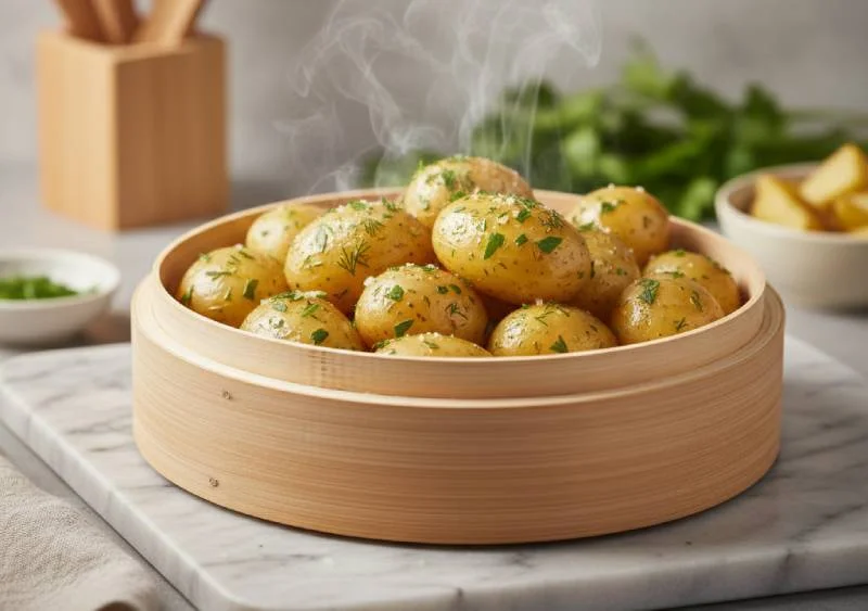 Les pommes de terre grenailles constituent le choix classique et indétrônable. Vous pouvez les cuire de deux manières également délicieuses : soit à la vapeur et simplement roulées dans du beurre persillé au moment de servir, soit ajoutées directement dans la cocotte deux heures avant la fin de cuisson où elles se gorgeront des jus épicés et prendront une texture crémeuse incomparable.
