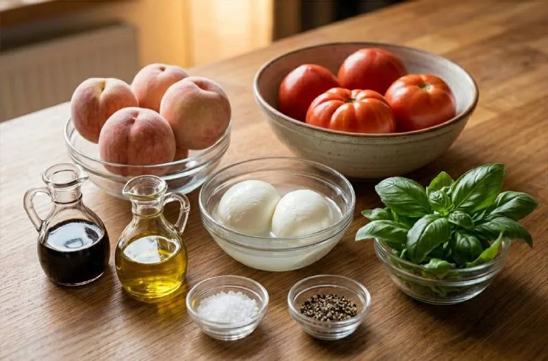 En plein été, la pêche blanche se marie de façon surprenante avec la mozzarella et le balsamique. Sa douceur sucrée contraste magnifiquement avec l'acidité du vinaigre et la légère salinité du fromage. Ajoutez quelques feuilles de roquette pour apporter une note poivrée et de la mâche au plat. C'est une association qui semble audacieuse sur le papier mais qui fonctionne à merveille dans l'assiette.