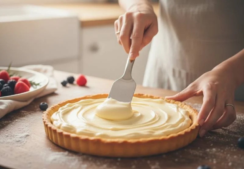 Si vous utilisez une pâte sablée du commerce pour aller plus vite, voici une astuce qui change vraiment le rendu final : badigeonnez le fond de la pâte cuite avec un peu de chocolat blanc fondu avant d'étaler la crème. Cette fine couche de chocolat, en se solidifiant, imperméabilise la pâte et l'empêche de ramollir au contact de la crème humide — résultat, votre tarte reste croustillante bien plus longtemps, même le lendemain.
