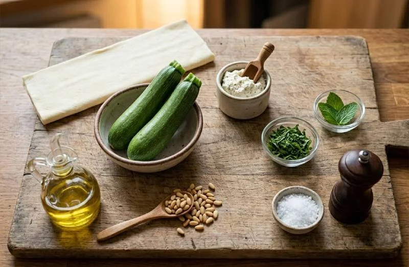 La qualité des courgettes fait vraiment toute la différence dans cette recette — peut-être encore plus que dans une soupe ou un gratin où les autres ingrédients masquent les imperfections. Une courgette ramassée jeune, ferme, dense et légèrement sucrée donne une tarte fine qui n'a besoin de presque rien pour être excellente. Prenez le temps de les choisir au marché, de les sentir si possible (une bonne courgette a un léger parfum végétal frais), et d'éviter les spécimens trop gros ou à la peau flasque. C'est la courgette qui fait la tarte — tout le reste n'est que mise en valeur.