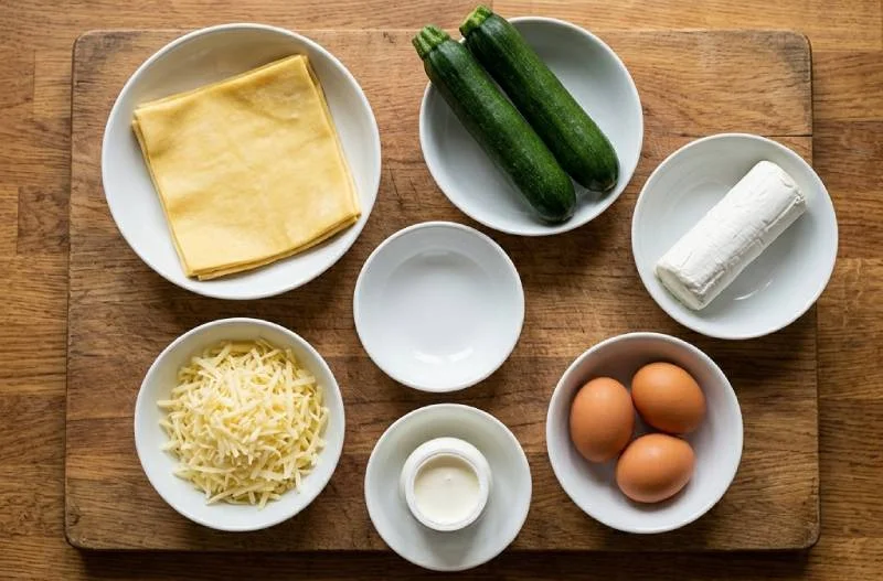 Non, l'épluchage n'est pas nécessaire. La peau des courgettes est fine, se mange très bien cuite, et apporte une légère tenue aux morceaux dans la tarte. Elle ajoute aussi de la couleur — ces petits bords verts dans la garniture crème sont visuellement jolis. Si votre courgette a une peau épaisse ou un peu abîmée, un épluchage partiel (une bande sur deux) est une bonne option intermédiaire.