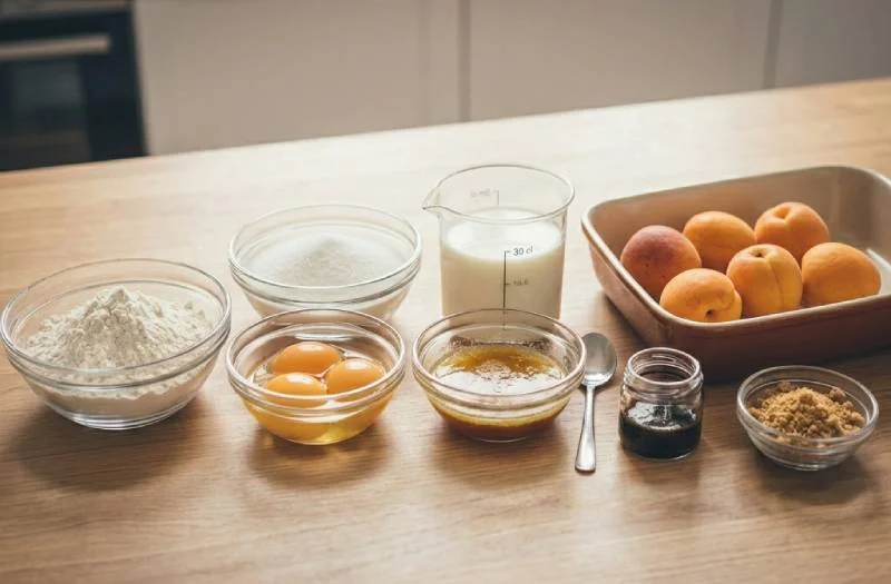 Ce clafoutis repose sur des ingrédients très simples qu'on a presque toujours à la maison. Mais comme toujours avec les recettes courtes, la qualité de chaque produit se ressent directement dans le résultat. Ici, les abricots et la vanille sont les deux éléments qui font vraiment la différence — le reste, c'est de la base.